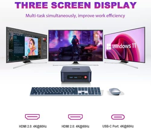 ⭐【UHD Graphics & 4K Triple Display Support】Mini desktop computer equipped with Intel UHD Graphics(up to 800MHz, 24 execution units), brings ultmate picture experience. Dual HDMI ports supports 4k HD video playback and web surfing, or connect to a TV/projector as a home theatre, enjoy a wonderful movie night with your family. Dual HDMI2.0 and Type-C allow you to connect three monitors simultaneously, simplifying and doubling your work efficiency.