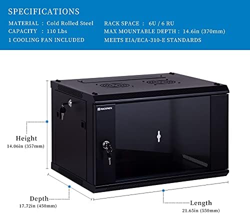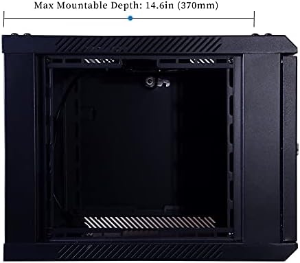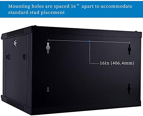 Dimensions: 21.65″ Length x 17.72″ Depth x 14.06″ Height ; The wall mounting holes on the 6U cabinet are spaced 16 inches center to center for greater stability, matching standard construction framework